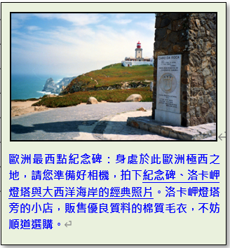 里斯本-85 Km(1.5 hrs)-歐比多斯OBIDOS-87 Km(1.5 hrs)-仙達皇宮PALACE OF SINTRA-18 Km(0.5 hr)-洛卡岬CAPE ROCA-41 Km(1 hr)-里斯本 【09:00 CHECK OUT HOTEL , 20:30 CHECK IN HOTEL】 |