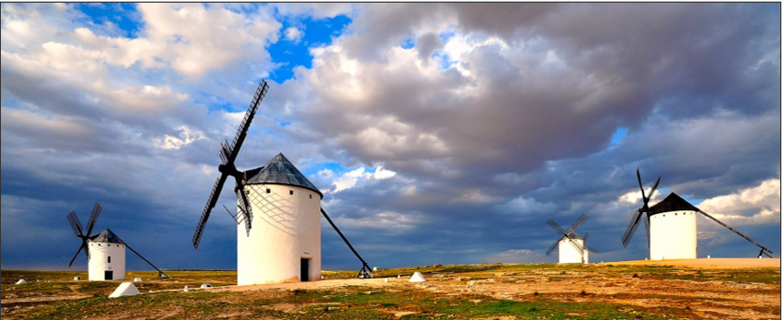 早晨搭乘西班牙★AVE高速列車前往曼查省首府—皇城,抵達後拜訪西班牙著名小說「唐吉軻德」故事背景所在地◎白色風車村,白色風車群在一片無垠的平原排列展開,構成典型拉曼查地區的鄉村風景,並前往◎唐吉軻德客棧享用午餐,之後前往◎托雷多古城。